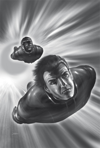 »Ich habe dir nichts aufgezwungen. Ich habe dir lediglich zurückgegeben, was zu dir gehört. Denn die Maske, unter der du dein Gesicht verbirgst, ist deine wahre Identität. Du solltest dich viel eindringlicher mit dir selbst beschäftigen und nicht damit, wie dich die anderen sehen.« (PR 2332) Alaska Saedelaere kehrte am 1. Dezember 1347 NGZ mit der CHEOS-TAI ins Solsystem zurück und half, nun nicht mehr länger Friedensfahrer, zunächst bei derÜberwindung der TRAITOR-Nachwirkungen. 1350 bis 1353 NGZ war er als Sonderbotschafter der LFT für das Galaktikum aktiv, ab 1355 NGZ war er 95 Jahre lang »spurlos verschollen«, bis er nach Terra zurückkehrte, aber kein einziges Wort darüber verlauten ließ, was er in diesen 95 Jahren erlebt hatte. Und nun ist er wieder unterwegs, auf den Spuren der verschollenen Samburi Yura; der Beginn neuer Abenteuer – und ein letztes Vermächtnis des viel zu früh verstorbenen Robert Feldhoff .…