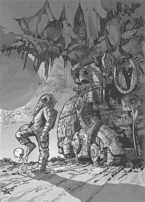 Erste weitere Informationen zur näheren Umgebung liefert der paranormale Ausflug des Schattenmaahks Pral. Er glaubt, dass »diese Welt« offenbar Kugelform hat. Und der »Rand« der Kugel, ihre »Oberfläche« – und darauf kann Pral sich gar keinen Reim machen – wird von Tausenden anderer, noch kleinerer »Welten« bestimmt ... Beim Vorstoß in die Tiefe des Handelssterns finden Rhodan & Co. zwar vieles, was an die bislang bekannten Dinge des Polyport-Netzes erinnert, doch bereits die an die Maschinenstadt Ambur-Karbush auf Wanderer erinnernde Anlage lässt aufmerken. Wie bei ihrem unzweifelhaften Vorbild fühlt sich Rhodan an ein dösendes Lebewesen erinnert, wenngleich hier wohl ein anderes Phänomen zugrunde liegt. Die Maschinenstadt auf Wanderer hat zwar keine Bewohner, dennoch pulsiert sie vor Vitalenergie – die zahllosen Bewusstseine, die ES im Lauf der langen Zeit aufgenommen hat, hauchen der Stadt ein schwer begreifliches Leben ein. Beim später erreichten Transferdeck ist schon auf den ersten Blick die Besonderheit zu erkennen: Es gibt nur eine einzelne energetische Röhre in einer großen Halle, nicht vier wie bei den normalen Transferdecks. Der aktivierte »B«-Controller Rhodans liefert Holoprojektionen, die Scheibenwelten zeigen. Dutzende, Hunderte, Tausende! Und alle zeigen Scheibenwelten, die Geschwister von Wanderer sein könnten, dem Kunstplaneten der Superintelligenz ES, die Rhodan letzten Endes auf diese Mission geschickt hat. Der Endwert entspricht exakt 20.000 – und Rhodan denkt unwillkürlich an jene berüchtigten »20.000 Jahre«, die seinerzeit von ES genannt wurden. Und ebenso unwillkürlich fragt sich Rhodan, ob die Scheibenwelten – quasi die Realisierung des klassisch-antiken Scheiben-Weltbildes – womöglich rund 8000 Kilometer Durchmesser und etwa 600 Kilometer Dicke haben. Nur eine zufällige Ähnlichkeit zum »Ur-Wanderer« ?