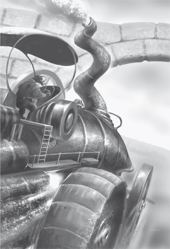 Auf dem Planeten, den die drei so unterschiedlichen Gefährten in der Gegenwart erreichen, leben noch D'Tar. Die meisten von ihnen glauben, ihre Welt D'Tarka sei eine Scheibe, in deren Mittelpunkt sich die von 36 konzentrisch angelegten Mauern umgebene Stadt D'Tarm befindet. Ihr Technologielevel ist vergleichsweise primitiv (Elektrizität und Dampfmaschinen gelten als hochmodern) und sie müssen zahlreiche Dogmen beachten. Der Erfinder F'har und sein Assistent L'hete reisen mit ihrem dampfbetriebenen Fahrzeug zu der Stelle, an der Sinnafoch, Kruuper und Philip angekommen sind. F'har hat gerade einen Wettstreit mit seinem schärfsten Widersacher Kritt'han verloren und danach beobachtet, wie der Transferkamin aufgeflackert ist. Als er sich mit Kruuper unterhält, ist er begeistert - die Ankunft von Wesen, die aus anderen Welten kommen, ist eine wissenschaftliche Sensation, die F'har zu neuem Ansehen verhelfen soll. Er schmuggelt die Fremden nach D'Tarm. Kruuper erfährt, dass es im Zentrum der Stadt einen senkrecht stehenden Transferkamin gibt. Dieser wurde quasi eingemauert, da die D'Tar glauben, die Röhre bringe Unglück. Ab und zu erscheinen dort Fremde, doch sie werden noch bei ihrer Ankunft von den so genannten Kreiswahrern verbrannt. Kruuper will den Turm erreichen, denn es gibt keine andere Möglichkeit, diese Welt wieder zu verlassen.