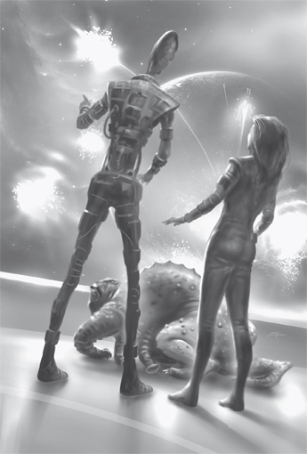 54 Milliarden Vatrox waren im Vatar-System versam melt, als die drei Kollektivwesen ihren Plan umsetzten. Sie alle bekamen mit, wie aus den drei Vamu-Depots gleichzeitig gleißende Kugeln aufstiegen, um dann zu verharren. Die Kugeln blähten sich auf, jeweils an einer Stelle bildete sich eine Einschnürung.