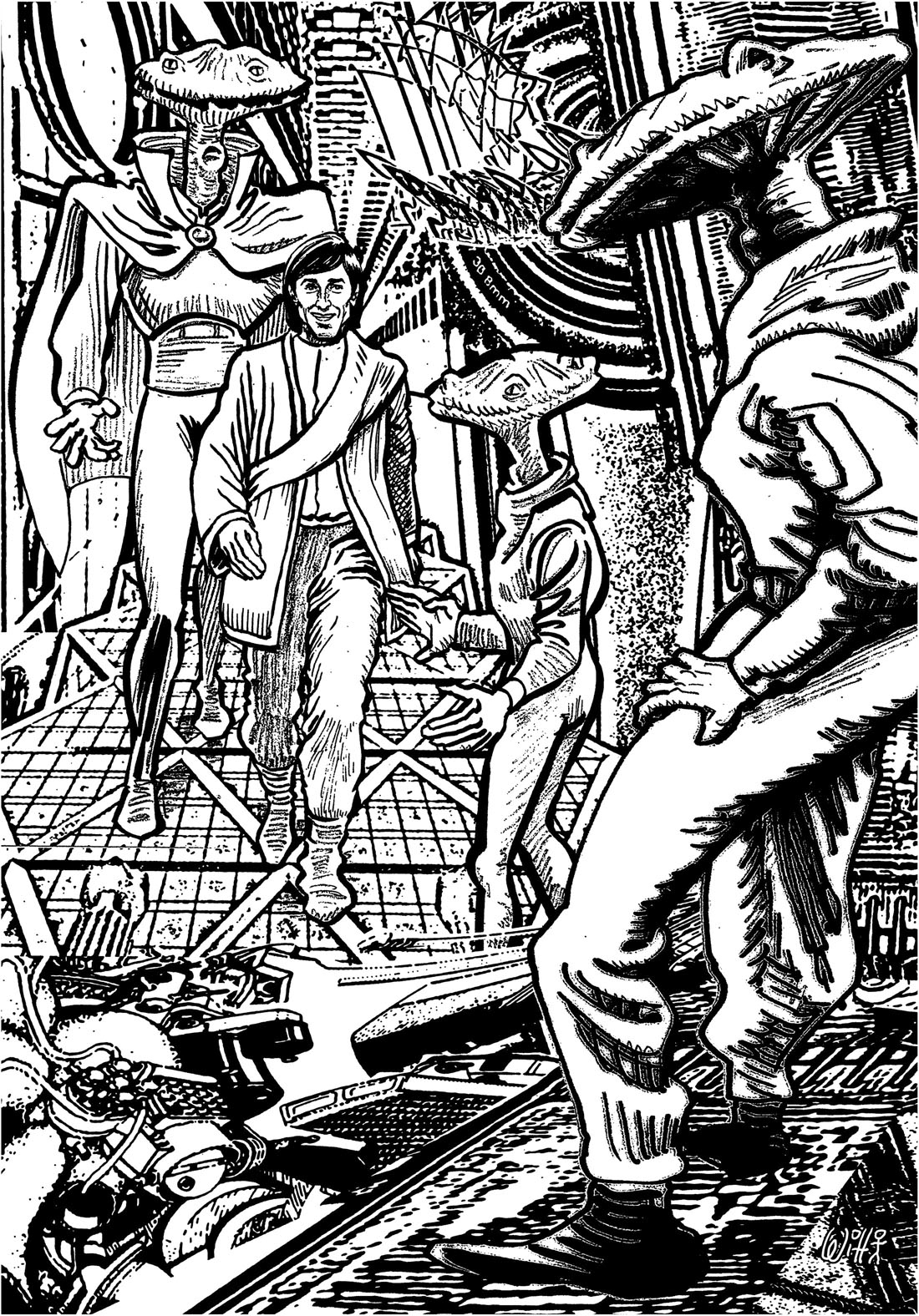 Arun Joschannan wird am 1. Januar 1470 NGZ zum Ersten Terraner der LFT gewählt. Schon wenige Wochen später macht er sich auf den Weg zu seinen ersten großen offiziellen Missionen. Am 1. Februar soll er die LFT bei der Eastside-Konferenz vertreten, an der fast alle Jülziish-Völker sowie Delegationen der Akonen, Topsider und anderer Völker teilnehmen werden. Danach will Joschannan einer Einladung des Theatrum-Systems folgen, die schon vor zwei Jahren ausgesprochen wurde. Joschannan will das unabhängige System zum Eintritt in die LFT bewegen. Henar Maltczyk, der Sekretär des Ersten Terraners, ist besorgt, denn einem Hinweis von Travnor zufolge ist ein Attentat geplant. Joschannan reist mit der TILL LEYDEN, die von zwei weiteren Schlachtschiffen der APOLLO-Klasse begleitet wird. Er trifft sich am Nabeg-Sonnentransmitter mit Admiral Ipthey-Hüriit, einem Apaso. Ipthey-Hüriit begleitet den terranischen Verband mit 50 eigenen Schiffen. Er berichtet Joschannan von einer Beobachtung, die er schon am 2. Januar gemacht hat. Drei mit überschweren Intervallkanonen bewaffnete Diskusschiffe unbekannter Bauart sind mitten durch einen Hyperorkan geflogen, möglicherweise haben sie einen Tryortan-Schlund als Transportmittel genutzt. Andere Schiffe dieser Art werden beim Weiterflug geortet. Es bleibt fraglich, ob es sich um Blues-Schiffe handelt, denn sie sind allem überlegen, was Ipthey-Hüriit kennt. Die Eastside-Konferenz findet auf einem von 17 identischen Planeten des Khamashnam-Planetenwalls statt. Quicheramo-Blues haben das System schon vor langer Zeit entdeckt, bisher wurde seine Existenz jedoch verschwiegen. Jetzt soll das System unter die Verwaltung des Galaktikums gestellt werden, denn es ist eines der sieben von den Oldtimern errichteten Suprahet-Fallensysteme. Dieser Tagesordnungspunkt bleibt offen, aber es wird unter anderem beschlossen, dass die ATLAS-Explorerflotte des Galaktikums künftig verstärkt in der Southside aktiv werden soll. Henar Maltczyk findet heraus, dass den Jülziish aus Furcht vor einer arkonidischen Dominanz daran gelegen ist, Akonen und LFT enger zusammenzubringen. Joschannan, der zuvor schon Ipthey-Hüriits Respekt gewonnen hat, erhält aufgrund seiner offenen Art bei der Konferenz den Beinamen "der ehrliche Arun". Die Reise geht weiter Richtung Theatrum-System. Unterwegs gehen Ipthey-Hüriits Begleitschiffe in einem Hypersturm verloren. Die TILL LEYDEN fängt einen Notruf des terranischen Handelsraumers WELLS FARGO auf, der angeblich von den geheimnisvollen Diskusschiffen angegriffen wird. Da es sich um eine Falle handeln könnte, bleiben Joschannan und sein Sekretär mit einer Korvette zurück, während die drei APOLLO-Schlachtschiffe der WELLS FARGO und ihrem Schwesterschiff WESTERN UNION zu Hilfe eilen. Prompt erscheinen drei Diskusraumer und nehmen die Korvette unter Beschuss. Die fähige Pilotin Vanessa Pateng zwingt das Schiff zwar in den Überlichtflug, aber der Antrieb und die Lebenserhaltungssysteme werden beschädigt. Die Korvette stürzt in den Normalraum zurück und muss auf der Wüstenwelt Mackurat notlanden. Zur Ablenkung steigt die gesamte Besatzung bis auf die Pilotin und Captain Tyll Brager mit zwei Shifts aus, gleichzeitig werden Roboter ausgeschleust. Die Diskusraumer folgen und kapern einen der Shifts. Es wird klar, dass es ihnen um die Gefangennahme des Ersten Terraners geht. Joschannan und seine Begleiter müssen sich in einer von Riesenwespen bewohnten Höhle verstecken, werden dort aber aufgespürt. Erneut gelingt ihnen die Flucht, und am 8. Februar treffen endlich die APOLLO-Raumer sowie 100 von Ipthey-Hüriit kommandierte Kampfschiffe der Jülziish aus dem Khamashnam-System ein. Zwei der fremden Disken werden vernichtet, der dritte entkommt. Die Untersuchung der Wracks erbringt kein verwertbares Ergebnis. Die Technik der Unbekannten ist nicht spezifisch blues'scher Herkunft, sie könnte ebenso gut von den Arkoniden stammen. Möglicherweise gehören sie zur von Badakk unterwanderten Interessengruppe Ark'Tussan. |