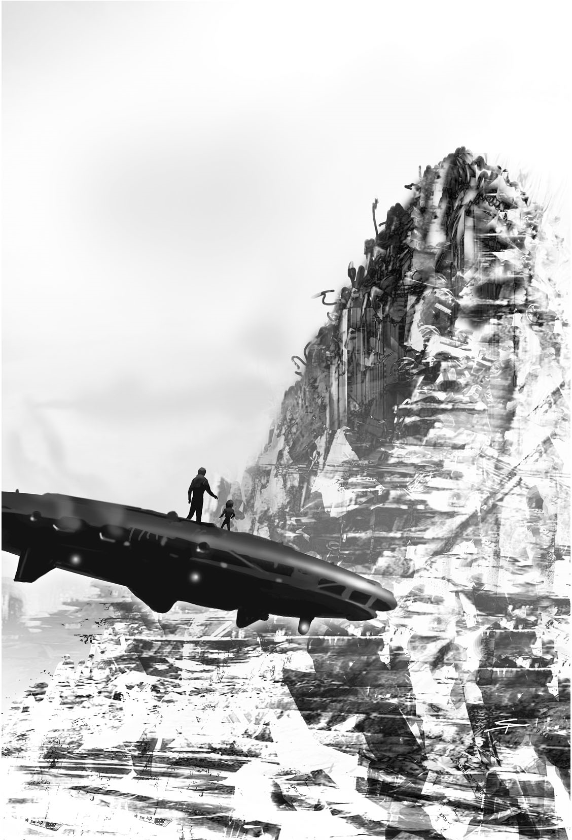 Wenn ich einmal von der typisch Montillon'schen Geschwätzigkeit absehe, mit der vermutlich über die relative Inhaltslosigkeit der Handlung hinweggetäuscht werden soll, kann ich doch ganz zufrieden mit dem Abschluss der Geschichte Sholoubwas sein. Seine Existenz als Schatten seines früheren Selbst, auf dessen Erinnerungsspeicher er immer noch zugreifen kann, ohne je wirklich begreifen zu können, wer er damals war, seine irgendwie an ein von Giger erschaffenes Szenario erinnernde Techno-Welt - das finde ich okay. Darum herum gibt es viel Gerede über die Beziehung zwischen Saedelaere und Blitzer. Saedelaere meint, sie seien Freunde, sorgt sich aber darüber, dass sich der Zwergandroide offenbar doch noch eine gewisse Loyalität gegenüber den Hohen Mächten bewahrt hat. In Gesprächen mit Sholoubwa versucht Saedelaere dem Konstrukteur klar zu machen, warum Lebewesen, verglichen mit Robotern, keineswegs irrelevant und minderwertig sind - leider vergeblich; da scheint Montillon auch kein schlagendes Argument eingefallen zu sein... Zwischendurch begegnet Saedelaere einem Eingeborenen namens Julisch, Sholoubwa sonnt sich für kurze Zeit in der wiedergewonnenen Größe und so weiter und so fort. Besonders schlau kann der Konstrukteur aber nicht sein. Denn wer, so frage ich mich, hätte ihm denn das Weltenschiff bringen sollen, wenn Saedelaere und Blitzer nicht zufällig des Weges gekommen wären? Und warum hat Sholoubwa seine Besucher erst in die Wüste geschickt, wenn ihm doch klar sein musste, dass er ihre Hilfe braucht? Wenn ich den Roman richtig verstanden habe, musste Blitzer das Weltenschiff holen, weil Sholoubwa keine seiner Externitäten schicken konnte. Er hätte sie mangels Nullkanal-Kontakt nicht lenken können. Warum hat Sholoubwa das Schiff eigentlich nicht gleich im Nahroin-System geparkt? Und wie kann der Nullkanal-Kontakt zum Weltenschiff bereits zu einem Zeitpunkt hergestellt werden, als sich das Schiff noch gar nicht im Freien Raum befindet, sondern in einem von der Hyperimpedanz-Erhöhung betroffenen Bereich? Das kommt mir alles etwas unausgegoren vor.