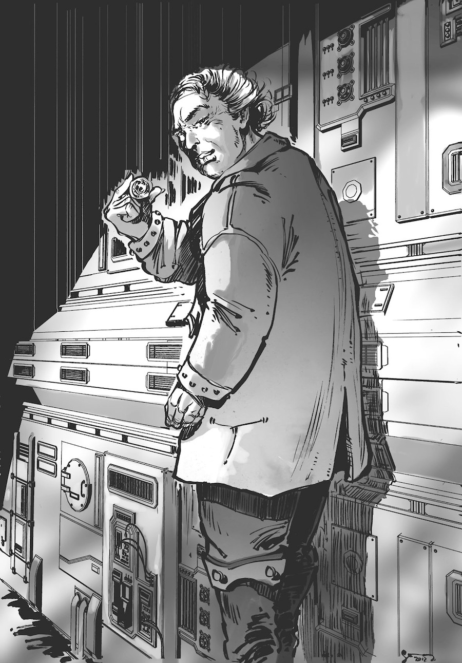 Flemming Burnett ist Koko-Interpreter für AGENT GREY, die Zentralpositronik des TLD. Sein Arbeitsplatz ist der TLD-Tower. Ab 1458 NGZ arbeitet er mit Fydor Riordan zusammen, dem damaligen stellvertretenden Leiter der "Abteilung Terra Intern". Er verfolgt Riordans Aufstieg und wird von ihm mit der Halbferronin Ve Kekolor zusammengebracht, in die er sich verliebt. Burnett erkennt nicht, dass beide ihn nur ausnutzen und für ihre eigenen Zwecke einspannen. Attilar Leccore tritt im Jahre 1465 NGZ die Nachfolge des verstorbenen TLD-Chefs Noviel Residor an. Riordan behauptet, die Terminale Kolonne TRAITOR sei dabei, die Milchstraße mit Koda Ariel zu unterwandern. Viele Menschen in wichtigen Positionen seien bereits durch Gestaltwandler ersetzt worden. Er äußert den Verdacht, Leccore sei einer von ihnen und übergibt Burnett ein Haar, das angeblich vom TLD-Chef stammt. Tatsächlich weist das Haar eine unbekannte DNS auf. Burnett ist nun davon überzeugt, dass er nur noch Riordan vertrauen kann und ihn im Kampf gegen die Invasoren unterstützen muss. Dabei sollen befreundete Fremdwesen helfen, die vor einiger Zeit im Solsystem erschienen sind: Die Sayporaner. Burnett erhält einen Datenkristall mit einem Programm, das er in AGENT GREY einspeist. Es sorgt dafür, dass die Positronik zwar Meldungen über die Aktivitäten der Sayporaner entgegennimmt, dann aber verändert und unterdrückt. So können die Fremden in aller Ruhe ihre Pläne durchführen. Am 1. Dezember 1469 NGZ infiltrieren Reginald Bull, Shanda Sarmotte und Toufec und zwei Agenten den TLD-Tower, um die Rückeroberung einzuleiten und das Transitparkett sicherzustellen. Sie werden von Attilar Leccore unterstützt, der nach dem Fall der TLD-Zentrale in den Untergrund gegangen ist. Der Zugang zum Tower wird durch einen "mobilen Raum" möglich, der zurzeit als Toilette des Restaurants Nachtasyl in Sub-Terrania dient. Es gibt drei derartige Räume, die sich durch Stollen zum TLD-Tower bewegen können, aber nur dieser eine ist AGENT GREY nicht bekannt. Nachdem sich die Einsatzgruppe dort versammelt hat, setzt sich der Raum in Bewegung und dockt schließlich am legendären 106. Stockwerk des TLD-Towers an. Als Leccore versucht, eine Tür im TLD-Tower mit seinen persönlichen Codes zu öffnen, wird Alarm ausgelöst. Fagesy und Roboter greifen an, aber auch die Infiltratoren sind bewaffnet und haben einen umgebauten TARA-Kampfroboter namens Stainless Stan dabei. Sie wehren sich erfolgreich und entdecken einen Raum, in dem Klonkörper Riordans und Kekolors heranwachsen. Offenbar wurde den beiden Verrätern jene Art der Unsterblichkeit versprochen, die bereits Kaowen gewährt wurde. Als Leccore zu Bulls Missfallen mit der Zerstörung der Klone beginnt, erscheinen wenig später erwartungsgemäß Riordan und Kekolor mit weiteren Truppen. Mit Pazuzus Hilfe bleiben Bulls Leute siegreich. Kekolor wird getötet, Riordan schwer verwundet. Burnett nimmt sich das Leben. Jetzt können terranische Einsatztruppen den TLD-Tower betreten. Nachdem die Situation unter Kontrolle gebracht wurde, besucht Leccore Riordan in dessen Sterbezimmer. Die beiden unterhalten sich über das bewusste Haar. Riordan nimmt sein Wissen über die Herkunft des Haares mit ins Grab. Leccore veranlasst, dass AGENT GREY das aufgezeichnete Gespräch löscht. |