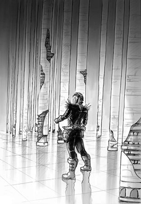 Alaska Saedelaere und Eroin Blitzer schleusen die SCHRAUBE-B ins Weltenschiff ein und fliegen zu jener unweit von Tolmar gelegenen Welt, auf der sie Sholoubwas Informationen zufolge Samburi Yura zu finden hoffen. Der Planet scheint unbewohnt zu sein. Es gibt zahlreiche Festungen, Industrieanlagen und dergleichen. Vieles ist zerstört, als ob Kämpfe stattgefunden hätten. Geringfügige Energieentfaltungen werden geortet. Im Orbit schweben sechzehn technische Objekte - Paradim-Akkumulatoren, wie sich später herausstellt. Saedelaere begibt sich zu Erkundungszwecken auf die Planetenoberfläche, während Blitzer im Weltenschiff wartet. Beide wissen nicht, dass sie seit ihrer Ankunft beobachtet werden. Der Planet - er trägt den Namen Elicon - ist zum Refugium der von Saedelaere besiegten Entität Tafalla geworden. Tafalla ist seinerzeit in zahlreiche Bruchstücke zerfallen, die erst wieder zueinander finden mussten. Dabei ist es zu den genannten Zerstörungen gekommen. Die Entität ist geistig womöglich noch zerrütteter als zuvor und wird vom Hass auf die Kosmokraten und all ihre Diener wie Samburi Yura erfüllt. Sie beherrscht jetzt Sholoubwas technische Hinterlassenschaften, in denen sie sich manifestiert hat. Als Saedelaere die Energieversorgung eines Gebäudes aktiviert und als Suchbegriff den Namen "Samburi Yura" in ein Computersystem eingibt, erinnert sich Tafalla wieder an den Maskenträger und plant seine Vernichtung. Saedelaere ahnt inzwischen zwar etwas, kann aber nicht verhindern, dass Tafalla Kontakt mit den Paradim-Akkumulatoren aufnimmt, sich daran stärkt und Samburi Yura in Alaskas Namen herbeiruft. Sie erscheint in einem Zeitbrunnen. Saedelaeres Freude ist nur von kurzer Dauer, denn die von ihm so lange gesuchte Frau zeigt sich abweisend und nicht erfreut über die Wiederbegegnung. Die beiden müssen jedoch zusammenarbeiten, um Tafalla besiegen zu können. Sie werden in eine Art Pararealität versetzt, in der Tafalla ihnen schwer zusetzt. Die Entität hat aber einen Fehler begangen, denn dieser Ort ist ihr Innerstes, und hier kann Samburi Yura Tafalla effektiv angreifen. Sie entfernt das Cappin-Fragment aus Saedelaeres Gesicht und schleudert es auf die Entität. Die Energien des Fragments und der Pararealität wirken zusammen und erschaffen ein Dimensionsgefängnis, in dem Tafalla nun nach Samburi Yuras Willen für immer festsitzen soll. Samburi Yura macht sich zum Aufbruch bereit und gibt Saedelaere die Gelegenheit, sie zu begleiten. Ernüchtert von der Erkenntnis, nur benutzt worden zu sein, lehnt er ab; das ist nicht die Frau, von der er einst fasziniert war. Außerdem kann der Terraner Tafallas Qualen spüren. Nachdem Samburi Yura durch ein UHF-Fenster verschwunden ist, nutzt er die noch immer bestehende Verbindung zum Cappin-Fragment, um Tafalla von seinen Qualen zu erlösen. Die Entität kollabiert. Das Cappin-Fragment befindet sich wieder in Saedelaeres Gesicht. Saedelaere kehrt zum Weltenschiff zurück. |