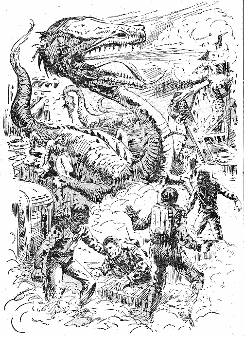 Weil sie in der Zeitstation von Pigell durch Poler und Thermoflammer in die Enge getrieben werden, fliehen Don Redhorse, Brazos Surfat, Chard Bradon, Olivier Doutreval, Lastafandemenreaos Papageorgiu und Sennan Brank durch einen Transmitter, der sie auf die Erde versetzt. Die nachdrängenden Thermoflammer töten die Besatzung der tefrodischen Gegenstation.