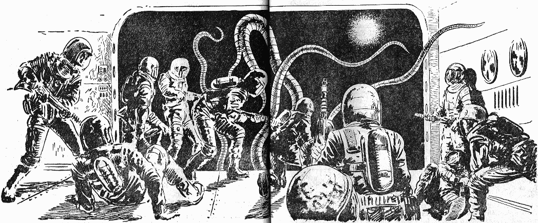 Die Kugel erklärt telepathisch, daß sie zum Volk der Sonneningenieure aus Andromeda gehöre, die im Auftrag der Lemurer die »Großen Tore«, die Sonnentransmitter, gebaut hätten. Sie und ihre beiden Gefährten seien aus Unvorsichtigkeit von den Transmitterkräften erfaßt worden, als sie die sechs »Großen Mütter« abgeschaltet hätten. Anschließend verläßt das Kugelwesen die CREST wieder durch einen Teleportersprung.