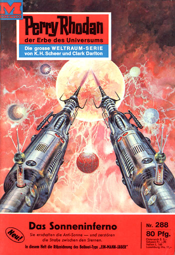 Die CREST III begleitet die RAWANA, das von Oberst Laan Tukesku kommandierte, eintausendfünfhundert Meter durchmessende Experimentalschiff, in dem das von Professor Arno Kalups Team entwickelte Hyperinmestron untergebracht ist. Es ruft durch Bestrahlung von Materie mit Inmestronen den Wiezold-Effekt hervor, die schlagartige Umwandlung von Materie in Antimaterie. Die mit Fusionssprengköpfen beladene Korvette KC-50 wird in Richtung eines Ecksterns des Sonnentransmitters gelenkt, und das Hyperinmestron verwandelt die durch Zündung der Sprengköpfe entstehende Kunstsonne in eine Anti-Sonne. Anti- und Normalmaterie kollidieren und vernichten sich gegenseitig. Die Zerstörung des Sonnentransmitters führt zu gewaltigen Energiestürmen im Zentrum des Andromedanebels, denen in einem Radius von zwanzig Lichtjahren etwa zweitausend Sonnen zum Opfer fallen. Die RAWANA und die CREST können sich jedoch rechtzeitig aus der Todeszone zurückziehen.