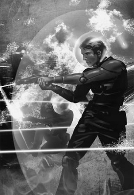 Für meinen Geschmack dauert es viel zu lang, bis Rhodan endlich kapiert, dass Onodaurd kein gewöhnlicher Gyanli ist. Auf die Idee, dass er eine Pashukan sein könnte, hätte er schon viel früher kommen müssen. Nun gut, irgendwann kommt Rhodan auf die zündende Idee. Er weiß jetzt also, dass er es mit einem wahnsinnig gefährlichen Gegner zu tun hat. Und was macht er als nächstes, sobald dieser Gegner aufgespürt wurde? Wirft er ihm alles entgegen, was sich in der RAS TSCHUBAI an Kampfrobotern aufbieten lässt? Nein, er und Jawna Togoya machen einen Alleingang. Ich sehe ja ein, dass Rhodan, der Titelheld unserer Lieblingsserie, ab und zu an vorderster Front mitkämpfen muss, aber DAS geht doch zu weit. Prompt geht die Sache schief. Was wäre wohl geschehen, wenn nicht die noch ziemlich wacklig auf den neuen Robotbeinen stehende Posbifrau den Maschinenschwarm angegriffen hätte (immerhin gelingt es ihr, ein paar Komponenten zu zerstören), sondern ein Dutzend TARA-IX-INSIDE-Kampfmaschinen?
