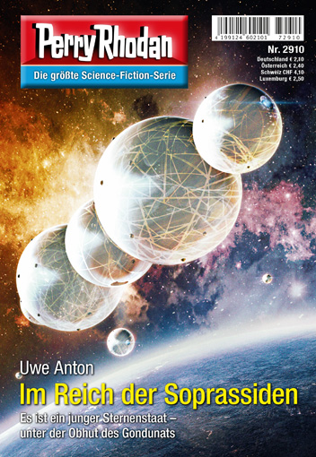 Perry Rhodan kennt nun die Geschichte der Thoogondu, zumindest was die Phase bis zum Exodus aus der Milchstraße angeht. Aber kennt er sie wirklich? Der Terraner hat da gewisse Zweifel. Er möchte nun noch wissen, wie es den Thoogondu nach ihrer Ankunft in Sevcooris ergangen ist. Narashim zufolge haben damals Kriege in der ganzen Galaxie getobt. Sie wurden von den Thoogondu beendet, zum Teil auch mit Gewalt, aber das geschah zum Wohle aller Völker. Rhodan soll sich persönlich ein Bild davon machen, welche Auswirkungen das Eingreifen des Goldenen Reiches hatte und noch immer hat. Als Anschauungsbeispiel schlägt Puoshoor, der seinem Vater und dem Gast aus der Milchstraße in der POTOOLEM Gesellschaft leistet, das Volk der Soprassiden vor. Diese nur 1,40 Meter großen, teils humanoiden, teils arachnoiden Intelligenzwesen, bei denen nur die je vier Arme und Beine nicht von einem schwarzen Chitinpanzer bedeckt sind, haben vor langer Zeit am Rande der Selbstvernichtung durch einen Atomkrieg gestanden. Die Thoogondu haben das Schlimmste verhindert und ihnen obendrein die Kompositoren geschenkt. Hierbei handelt es sich um Lowtech-Transmitter mit relativ geringer Reichweite, die mehrere Kolonialsysteme mit dem Soprasystem verbinden, dem Hauptsystem der Soprassiden. Die Soprassiden besitzen keine überlichtschnellen Raumschiffe.