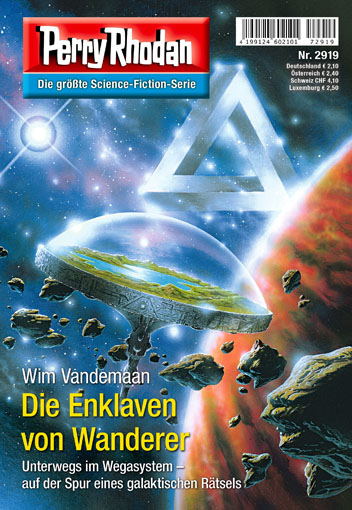 Ellert kommt auf die Idee, dass sich Homunks Kopf nur auf Enceladus befinden kann. Dort gibt es einen jungen Einschlagkrater, der als Fundstelle in Betracht kommt. Man schwatzt den Topsidern einen raumflugfähigen Gleiter ab, muss dann aber eine Erfahrung machen, die ihnen schon bekannt ist. Enceladus bleibt in weiter Ferne, egal wie lange man fliegt. Ellerts Amulett ist die Lösung. Es vervielfacht seine Größe, das dreieckige Feld im Zentrum verwandelt sich. Ellert weiß, dass es sich bei der Diabase des Tribars um eine Querung handelt, ein Portal, das ihn und zwei Personen zum Enceladus transportieren wird. Ellert, Quint und Zau machen den Schritt. Anschließend sagt Zau, es habe sich um einen Transport über die Dakkarspur gehandelt. Auch auf dem Mond leben Menschen. In dieser Enklave schreibt man den 29. April 1991. Die drei Neuankömmlinge werden von einem fünfzigjährigen Perry Rhodan (ohne Zellaktivator) begrüßt, der keinen von ihnen kennt. Er leitet eine Expedition, die den Einschlagkrater untersuchen soll. Vor 20 Jahren hat ein großes kugelförmiges Objekt aus Stahl die Eiskruste des Mondes durchschlagen und ist im Ozean versunken. Eine Tauchexpedition sollte gerade starten.
