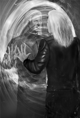 Da erscheint Drush in einem von zwei Shod-Spiegeln, die sich im Resonanzraum befinden. Ghatus stürmen den Raum. Drush verhält sich anders als alle Gemeni, denen Atlan bisher begegnet ist. Der Arkonide geht zu Recht davon aus, dass sich Drush aus der Symbiose des Gemoshoms gelöst hat. Atlan und der Bhal unterhalten sich auf Augenhöhe. Drush behauptet, er und ES seien einander seit Jahrtausenden bekannt. Drush ist der Ableger des ersten Bhals, der als Botschafter GESHODS bei ES in der Milchstraße aktiv war und 28.400 v. Chr. Kontakt mit den ins Exil abziehenden Thoogondu hatte. Ihm ist klargeworden, dass es bei ES eine dunkle Seite der Macht gibt und dass diese mächtige Superintelligenz gnadenlos gegen jeden vorgeht, der sich nicht unterordnet. Der Ur-Bhal hat nach Möglichkeiten gesucht, um GESHOD vor einem derartigen Schicksal zu bewahren. Notfalls sollte GESHOD ins Koma gelegt werden. Gemeinsam mit der Gilde des Gondus haben der Bhal und sein Teil der Zeitlichen Eskorte einen Langzeitplan entwickelt. Zentraler Bestandteil ist die Schwächung wichtiger Hilfsvölker von ES, damit GESHOD in Ruhe wachsen und stärker werden kann. In Frage kommende Hilfsvölker sind die Nachkommen der Lemurer, die Haluter und ein den Galaktikern bis dato unbekanntes Volk - die Mheriren. Den Halutern wurde ein Neogen implantiert, das mit einem Sextadim-Impulsgeber (dem Neogen-Appellator) aktiviert werden kann und dafür sorgt, dass dieses Volk paralysiert wird. Gemeint ist die vor einiger Zeit ausgebrochene Haluter-Pest, das Stasis-Syndrom.
