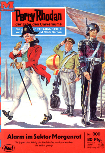 Am 25. August 2435 kommt die FRANCIS DRAKE, das achthundertfünfzig Meter durchmessende Kugelraumschiff Roi Dantons, des Königs der Freihändler, der KOBE zu Hilfe, einem von elf Kampfraumern der Blues angegriffenen Leichten Kreuzer der Solaren Flotte, und setzt dabei offenbar Transformkanonen ein. Mit neunzehn Raumschiffen, zu denen sein neues Flaggschiff, das von dem Epsaler Oberst Merlin Akran kommandierte Ultraschlachtschiff CREST IV, und Atlans Flaggschiff, die IMPERATOR III, gehören, stellt Perry Rhodan am folgenden Tag die FRANCIS DRAKE in Rois System, um das Freihändlerschiff nach der Geheimwaffe des Solaren Imperiums zu durchsuchen. Das Sonnensystem ist nur achthundertneunzehn Lichtjahre vom »Sektor Morgenrot« entfernt, einem Aufmarschgebiet der Solaren Flotte am Südrand der Milchstraße. Da der »Sektor Morgenrot« den Magellanschen Wolken gegenüberliegt, in denen zahlreiche terranische Forschungsschiffe verschollen sind, wurden hier starke Verbände konzentriert. Nur Dantons ertrusischer Leibwächter Oro Masut weiß, daß der Freihändlerkönig, der bevorzugt Kleidung des französischen Rokoko trägt und die Rolle eine affektierten adligen Stutzers spielt, in Wirklichkeit Perry Rhodans Sohn Michael ist. Danton fordert Atlan zu einem Degenduell, um die Untersuchung seines Schiffes zu verhindern. Mit dreitausend Mann landen Rhodan und Atlan auf Rubin, dem von rothäutigen, känguruhähnlichen Eingeborenen bewohnten dritten Planeten, auf dem die Freihändler reiche Vorkommen an Howalgonium, einem für die Hypertechnik unverzichtbaren Schwingquarz, entdeckt haben. Zwischen dem terranischen Landekommando und den neunhundert Freihändlern kommt es zu einem kurzen Gefecht mit Paralysatoren. Atlan unterbricht den Kampf schließlich und nimmt Dantons Herausforderung an.