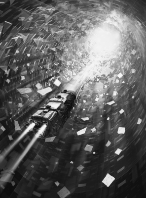 Flaith verkündet, sie sei bereit, die Abyssale Dispersion auf sich zu nehmen, um der Kandidatin Phaatom besser dienen zu können. Die Entität ergreift vorübergehend Besitz von Whekoshi, prüft die Thesan und gestattet es ihr, den Schlitten zu verlassen. Gry O'Shannon, die seit einiger Zeit geradezu besessen von der Vektormaterie ist, lässt sich diese Gelegenheit nicht entgehen. Sie stürmt hinaus, wobei sie Rhodan und Flaith anrempel, so dass sie aus dem Schlitten fallen. Flaith hat keineswegs die Absicht, sich der Kandidatin Phaatom zu unterwerfen. Sie will den Bogen mit psionischen Mikroparzellen zerstören, die sie vom Widerstand erhalten hat. Diese gruppieren sich um, werden aktiv und setzen unfassbare Energien frei. Der Schlitten wird beschädigt. Vektormaterie dringt ein und beginnt mit der Zersetzung der Phaatom-Gabe, aus der der Schauraum besteht. Auch Flaith wird annihiliert.