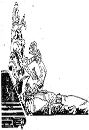Als die Löwenmenschen Perry Rhodan von seinen Leuten trennen, befiehlt Danton Masut, ihn zu befreien. Um ihm die Bedeutung von Dantons Auftrag klar zu machen, gesteht der Leibwächter des Freihändlerkönigs Kasom, daß Roi Danton Perry Rhodans Sohn ist. Gemeinsam bringen die Ertruser den Großadministrator in Sicherheit und verbergen sich mit bei der Landestützenhydraulik des Schiffes. Akh, der Kommandant des Gurrad-Stützpunkts, läßt die Terraner in das Birnenschiff zurückschaffen.
