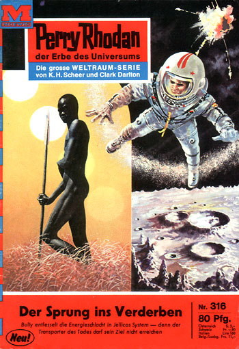 Ras Tschubai wird vom HÜ-Schirm der I-13 in die ferne Vergangenheit seiner äquatorialafrikanischen Heimat geschleudert und begegnet einem Stamm steinzeitlicher Jäger. Als die Explosion der Zeitbombe ihn schließlich in die Gegenwart zurückholt, findet er sich in unmittelbarer Nähe von Jellicos Stern wieder, wo ihn die Mausbiber in letzter Sekunde retten.