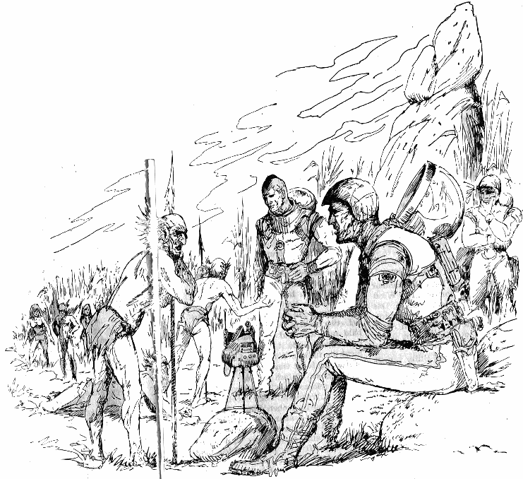Perry Rhodan, Melbar Kasom und Oro Masut suchen nach dem fremden Hypersender, der sich in Sprüngen über die Oberfläche Boultats bewegt. Dabei begegnen sie den Skaldalen, primitiven menschenähnlichen und blauhäutigen Eingeborenen, die von flugfähigen Vorfahren abstammen. Nachdem sie das Bewegungsmuster des Senders durchschaut haben, können Rhodan und die beiden Ertruser am 1. Dezember 2435 zwei Generäle festnehmen, die die Sendeanlage mit Hilfe von Kleintransmittern transportieren.