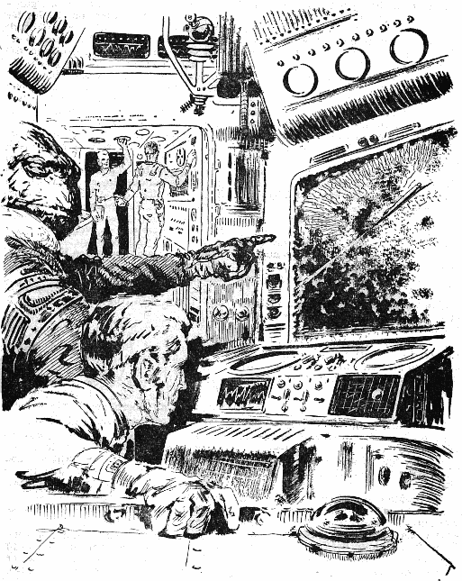 Schließlich verankern Icho Tolot und Fancan Teik, die Baiwoffs Castle gefolgt sind, ihr Schiff wieder an der Oberfläche des solaren Flottenflaggschiffs und treiben durch ihr bloßes Erscheinen und ihre Zellkernstrahlung die fünfzehnhundert Dumfries, die sich noch in der CREST aufhalten, von Bord. Die Tatsache, daß Agen Thrumb eine Gelegenheit, die CREST zu verlassen, nicht genutzt hat, weckt in Rhodan die Vermutung, es könne sich bei dem Druis um einen heimlichen Botschafter der Konstrukteure des Zentrums handeln.