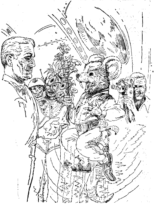 Einem Hinweis des Stützpunktingenieurs Agen Thrumb folgend, erreicht die CREST am 5. Juli das Scintilla-System, in dem die Okefenokees, die »Philosophen und Denker« von M 87, leben. Die von Major Ronald Keller kommandierte Korvette KC-31 bringt Rhodan und eine achtundzwanzigköpfige Gruppe, der Roi Danton, Oro Masut, John Marshall, Ras Tschubai und die Psychologen Professor Dr. Tschu Piao-Teh und Eileen Dacran gehören, zum zweiten Planeten der Sonne Scintilla, der parkähnlichen Wohnwelt Pompeo Posar. Von den Okefenokees hofft Rhodan Rat und Informationen über die Konstrukteure des Zentrums zu erhalten. Die Terraner erkennen, daß der zwergenhafte Teleporter, der die CREST IV am 15. Januar 2436, kurz nach ihrem Auftauchen in M 87, terrorisierte, ein Okefenokee war.