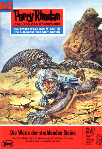 Rhodan ist entschlossen, die Pläne jener Waffe zu beschaffen, mit der es den Lemurern vor fünfzig Jahrtausenden gelungen ist, die Haluter nach einem zweiundneunzig Jahre währenden Krieg zu besiegen. An den in der Pyramide OLD MANs gespeicherten Koordinaten erreicht die CREST V am 2. Dezember 2436 mit dem eigenwilligen und streitsüchtigen Anthropologen und Lemurer-Fachmann Professor Dr. Sergej Chuzijew an Bord Satyat, den zweiten Planeten der in der galaktischen Eastside gelegenen gelben Sonne Satys. Da die Landung eines Raumschiffs nach Aussage der Pyramide zur sofortigen Explosion Satyats führen würde und nur Perry Rhodan und ein Begleitroboter mit einem kleinen Rettungsboot landen dürften, begibt sich der Großadministrator mit dem Paladin allein auf den Planeten, der eine Schwerkraft von 7,2 Gravos aufweist und von den gepanzerten, Urths bevölkert wird. Die flunderförmigen Wesen sind zwei Meter lang, fast eineinhalb Meter breit, aber nur dreißig Zentimeter hoch und besitzen acht Beine sowie zwei Arme, die in sechsfingrigen Klauen enden. Der flache Kopf mit den starr blickenden Augen kann vollständig unter die Panzerhülle zurückgezogen werden.