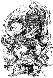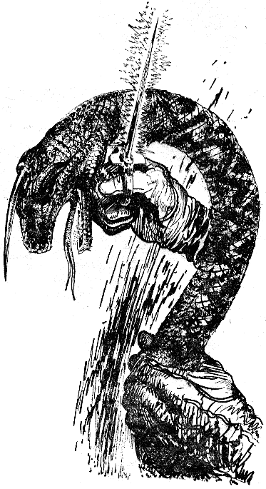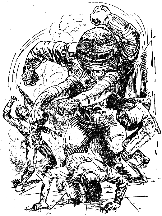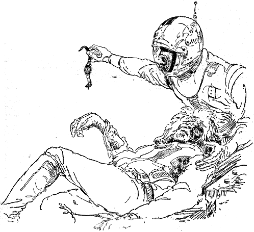 Am 14. Juli 2437 entdecken die Männer des von Major Roursel Habylet kommandierten Leichten Kreuzers SCENDALA, der seit einem Monat die Materiebrücke zwischen den Magellanschen Wolken untersucht, das im All treibende Wrack eines Baramo-Raumschiffs. Neben toten Gurrads und Baramos befindet sich an Bord der reglose Körper eines vier Meter großen haluterähnlichen Wesens mit einer Haut aus blaugrünen, sechseckigen Schuppen. Captain Syn Roderer, der die Reise der CREST IV nach M mitgemacht hat, erkennt in dem Giganten, der in seiner Brust drei blau leuchtende Steine trägt, eine der von den Okefenokees geschaffenen Bestien. Die Terraner rekonstruieren, daß die Bestie vor fünfhunderteinundzwanzig Jahren den Auftrag hatte, fünfhundert Gurrads aus der Großen in die Kleine Magellansche Wolke zu bringen. Die Löwenmenschen, die dazu ausersehen waren, von Angehörigen der Ersten Schwingungsmacht übernommen zu werden, töteten die Baramo-Besatzung des Schiffes und vergifteten anschließend die Bestie mit vier Lanzenschlangen, die sie heimlich an Bord geschmuggelt hatten. Sie kamen jedoch alle ums Leben, als ihr Opfer im Todeskampf zu toben begann.