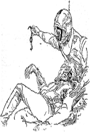 Nachdem sie in die Sauerstoffatmosphäre der SCENDALA gebracht worden ist, erwacht die Bestie. Sie übernimmt nacheinander Besatzungsmitglieder der SCENDALA und versucht, das terranische Schiff in ihre Gewalt zu bekommen. Um die Terraner zu täuschen, stößt sie zuletzt ihren leeren Kampfanzug ins All und bringt ihn zur Explosion. Unmittelbar bevor sich der Kreuzer dem Treffpunkt der Solaren Flotte nähert, wird die Bestie aber entdeckt und getötet.