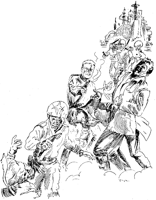 In dem achthundertfünfzig Meter hohen Pyramidenschiff LAVASZA des Wissenden Lavascha, das durch Vermittlung Schekonus zur MARCO POLO gekommen ist, fliegt ein fünfzigköpfiges Kommando, zu dem Fellmer Lloyd und der hünenhafte Commander LaGrange Tuscalosa gehören, am 10. März 3438 unter dem Befehl von Joaquin Manuel Cascal den Planeten Takera an. Dort erfahren die Terraner, die in der Maske von Moritatoren auftreten, vom Tod des Taschkars. Cascal und Tuscalosa nehmen mit Escroplan, dem Kopf einer takerischen Untergrundorganisation, Kontakt auf. Als die Marsav das Hauptquartier der Gruppe stürmt, sucht Escroplan mit den Terranern die Wesakenos auf, die ebenfalls einen Stützpunkt in Taschkanor unterhalten und sogar die Marsav infiltriert haben. Ihr Anführer Miraltans hat bereits durch Valtenosch von den Terranern erfahren. Die Geheimpolizei verbietet nach den Zwischenfällen allerdings die »Ganjo-wird-kommen-Schau« Lavaschas des Dröhnenden und zwingt die LAVASZA, das System zu verlassen.