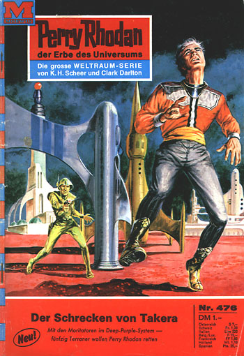 Zur gleichen Zeit gelingt es Perry Rhodan, Ovaron, Atlan, Ras Tschubai, Merkosh, Takvorian, Gucky und dem Paladin, die vor den Robotern des aktiv gewordenen Sammlers fliehen müssen, die Raumjacht des alten Taschkars zu erreichen und in den Weltraum zu entkommen. Das kleine Schiff wird von takerischen Einheiten verfolgt, und die Besatzung der LAVASZA wird auf die Jagd aufmerksam, die sich im Bereich Tschukmars, des vierundzwanzigsten Deep-Purple-Planeten, abspielt. Gucky nimmt telepathischen Kontakt mit Fellmer Lloyd auf dem Moritatorenschiff auf und bringt zusammen mit Tschubai sich und seine Begleiter durch Teleportation in Sicherheit. Vor einem takerischen Kommando, das die LAVASZA anschließend durchsucht, können die Flüchtlinge verborgen werden. Da die takerische Flotte die Jacht des Taschkars vernichtet, ist Ginkorasch nun davon überzeugt, daß der verhaßte Ganjo beseitigt ist.