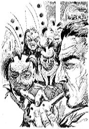 Am 5. März, acht Tage nach dem ersten Abklingen der Verdummung, verlassen in Begleitung von mehr als fünftausend Einheiten der Jagdflotte achthundert Wabenschiffe den Schwarm. Auf dem viertausend Meter durchmessenden Heckteil jedes Wabenschiffes sind zwei Millionen sechskantiger Waben so angeordnet, daß ein an einen Bienenkorb erinnerndes Raumschiff von achttausend Metern Länge entsteht. Mit der GOOD HOPE II folgt Perry Rhodan dem Schiffsverband, und Gucky und Bossa Cova dringen per Teleportation in ein Wabenschiff ein. Während der Reeder die Kleinen Purpurnen ablenkt, indem er auf einer Okarina ein Freihändlerlied spielt, beobachtet der Mausbiber in den Wabenröhren ein konturloses, ockergelbes Wabern und sieht dadurch seine Bezeichnung »Gelbe Eroberer« bestätigt.
