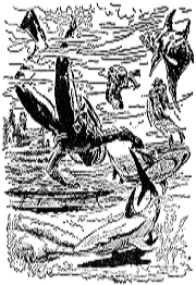 In einer Unterwasserstadt des vierten Praspa-Planeten begegnen Alaska Saedelaere und Gucky kleinen, grünschuppigen Wasserwesen, deren runde Köpfe mehrere stöpselähnliche Stielaugen und auf jeder Seite je einen taschenartigen Mund aufweisen. Der Terraner und der Mausbiber finden Unterlagen, aus denen hervorgeht, daß Praspa aus einer anderen Galaxis stammt und daß die Erbauer der Stadt, deren degenerierte Nachkommen die Wasserwesen sind, vor der Übernahme des Systems durch den Schwarm vom dritten auf den vierten Planeten geflohen sind und sich in die Tiefen des Ozeans zurückgezogen haben. Alte Bilder des Schwarms zeigen, daß dieser im Laufe der Zeit an Größte zugenommen hat.