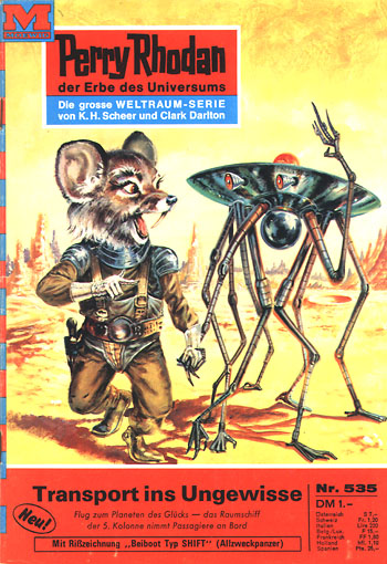 Die Mitglieder der Fünften Kolonne beschließen, die gefährliche Vermehrung der Gelben Eroberer durch Ansteckung mit der Zellexplosion zu stoppen und die Immunen dazu mit gesunden Gelben Eroberern in Kontakt zu bringen. Sie bieten den Gelben die Möglichkeit, mit der GEVARI von Kokon zu entkommen, und achthundert Immune gehen an Bord der Space-Jet. Ihr Anführer berichtet, daß der Schwarm, der bereits vor einer Million Jahre die Milchstraße durchquerte, ursprünglich die Aufgabe gehabt habe, den Funken der Intelligenz im Kosmos zu verbreiten, mittlerweile jedoch nicht mehr von seinen eigentlichen Herren, sondern von entarteten Göttern geführt werde. Auf dem Flug zu dem zweiten Planeten einer zehn Lichtjahre entfernten, gelben Sonne, auf dem sich die Gelben Eroberer versammeln, zeigt sich, daß die Erreger der Zellexplosion den Teilungswillen der Immunen nicht beeinträchtigen. Um der GEVARI die Landung auf dem Planeten zu ermöglichen, teleportiert Gucky in eines der Wachschiffe, die die fremde Welt umkreisen. Während die immunen Gelben Eroberer sich unter ihre Artgenossen mischen, freundet sich der Mausbiber mit einem Androiden an, den er seiner Gestalt wegen Tellerspinne nennt und der die Aussagen der Gelben Eroberer bestätigt. Als die Space-Jet den Planeten wieder verläßt, bleiben die Blazon-Brüder dort, um in einer der Sechskantröhren der Gelben Eroberer den Schwarm zu verlassen und Perry Rhodan zu informieren. Am 12. Mai kehrt die GEVARI wieder nach Kokon zurück, nachdem die eintausendfünfhundert Wabenschiffe mit drei Milliarden teilungswilligen Gelben Eroberern an Bord zusammen mit fünftausend Einheiten der Wachflotte gestartet sind.