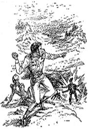 Nachdem er den Palast des Götzen gesprengt hat, erreicht der Terraner zusammen mit dem Knöchernen einen Raumhafen, aber Konasco-Cy wird getötet, ehe die MARCO POLO erscheint, die die Materialisierung Saedelaeres und der vier Lacoons im Intern-Beta-System angemessen hat, den Transmittergeschädigten rettet und anschließend das System sofort wieder verläßt.