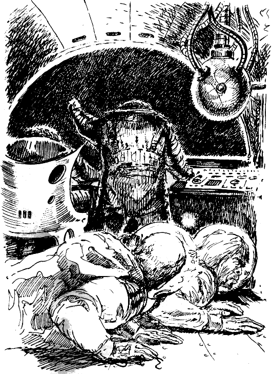 Nachdem die Männer an Bord des Maahkschiffes gelangt sind, müssen sie aufgrund ihres langsam schwindenden Sauerstoffvorrats eine Unterdruckkammer mit Sauerstoffatmosphäre finden, da dies die einzige Chance zum Überleben darstellt. Zwiebus und Goshmo-Khan gelingt es, in der Nähe der Zentrale eine solche vollrobotisch betriebene Kammer zu finden und die anderen Männer nachkommen zu lassen, so dass die Männer den Weg bis Lookout überleben können. Die Maahks ahnen nichts von der Anwesenheit des Teams an Bord ihres Schiffes, ebensowenig wie ihnen noch nicht klar geworden ist, dass sie mit PAD infiziert sind.