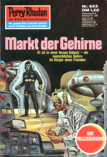 Perry Rhodan, dessen Gehirn von Markhor de Lapal mittels des speziellen PGT-Verfahrens aus seinem Körper entnommen und gegen ein mit Hilfe von ANTI-ES gezüchtetes Gehirn vertauscht wurde, findet sich mit Blick auf Gehirne in Behältern, die in Regalen stehen, wieder. Sofort wird ihm klar, dass er, sein Gehirn, sich ebenfalls in einem derartigen Behälter in einem Regal stehend befindet. Diese Erkenntnis lässt ihn beinahe in den Wahnsinn abgleiten. Nach einiger Zeit gelingt es ihm, mit den anderen Gehirnen zu kommunizieren. Er erfährt, dass er sich auf Yaanzar im System Zoornon in der Galaxie Naupaum befindet, im Markt der Gehirne. Weiterhin erfährt er von den anderen Gehirnen, die dem Volk der Bordins angehören, dass der Markt der Gehirne quasi der »Ersatzteilversorgung« überalterter Yaanztroner dient. Er wird als Ceynach bezeichnet und stellt sich als Danro aus der Galaxie Moolk vor.