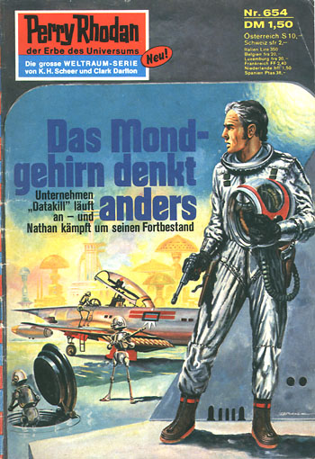 Verstärkte Aktivitäten der Laren auf dem Mond veranlassen Atlan, die Löschung des positronischen Teils NATHANs in Angriff zu nehmen, nachdem die letzten eintausendzweihundertsiebenunddreißig der vierzehntausendsechshundertundacht als Teillaster bezeichneten Speicherroboter geborgen worden sind, auf die im Rahmen des »Falls Harmonie« die Daten NATHANs übertragen wurden. An der Aktion nimmt neben Neryman Tulocky, Powlor Ortokur und den Mutanten sowie Technikern und Agenten der Solaren Abwehr und der USO auch Tatcher a Hainu teil, der zur Erde zurückkehrt, nachdem er in der Eastside einen vernichtenden Angriff der Laren gegen Schiffe des Bluesvolkes der Latoser beobachtet und den Planeten Last Port besucht hat. Bei einer Kontaktaufnahme mit NATHAN teilt a Hainu dem Mondgehirn nebenbei mit, daß Dalaimoc Rorvic der Sohn eines Cynos und einer menschlichen Frau sei. Der Widerstand der Plasmakomponente NATHANs, die die durch eine Datenlöschung drohende Hilflosigkeit fürchtet und sogar Perry Rhodan parapsychisch zu beeinflussen versucht, wird schließlich durch Rorvics Eingreifen überwunden. Einem Angriff der Laren entzieht sich das Einsatzkommando durch Flucht. |