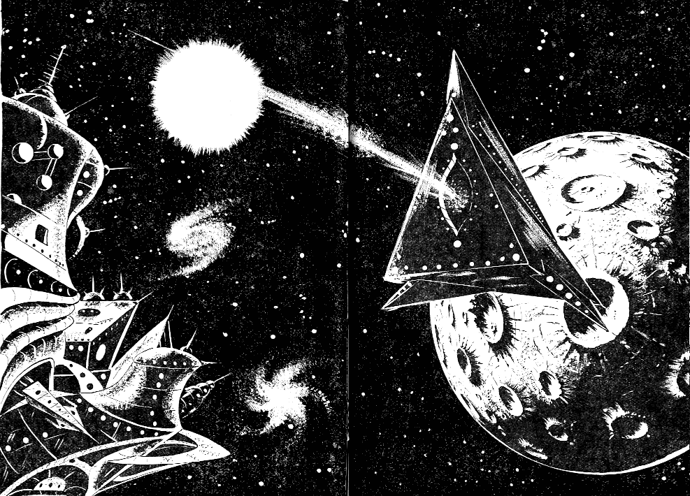 Trotz Automatik kann der Flug nicht rechtzeitig genug abgebrochen werden, die BOX-7149 stürzt ein gutes Stück von der Sonne entfernt in den Normalraum zurück. Das Raumschiff legt das letzte Stück Weg zum Zielstern im Unterlichtflug zurück. Auf dem Weg entdeckt die Besatzung ein prismenförmiges Objekt, dessen Grundfläche ein gleichschenkliges Dreieck bildet. Die Gesamtlänge des Objektes beträgt knapp über anderhalb Kilometer. Der leitende Astronom der BOX-7149 vermutet, dass es sich bei dem offensichtlich künstlichen Gebilde um eine Raumstation handelt.