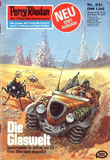 Auf dem fünften Planeten einer hellgelben Sonne, den Perry Rhodan Glaswelt nennt, weil zwischen turmartigen Konstruktionen zahllose Glastrümmer den Boden bedecken, befreit BULLOC den Terraner aus seiner Sphäre, um durch Meditation seine Persönlichkeit stabilisieren zu können.