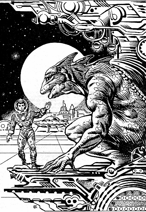 Mit der GRENIT folgt Kemoauc der TARTUS, bis diese auf einem Planeten landet, und fliegt danach allein in den Bereich der Materiequelle. Dort entdeckt er eine gewaltige Raumstation, die an die kosmischen Burgen der Mächtigen erinnert. Auf ihrer Oberfläche trifft Kemoauc den Vilthaner Neerad, ein zwei Meter großes, dreibeiniges Echsenwesen mit langen Armen und einer Schuppenhaut, das hier Wartungsaufgaben erfüllt. Mit Neerad und seiner Familie dringt der Mächtige in das Innere der Station ein. Riesige Fertigungsanlagen rufen den Eindruck hervor, daß hier mit großem Aufwand ein perfekter Roboter von der Art Laires hergestellt wird. Angesichts der biologisch-medizinischen Laboratorien entwickelt Kemoauc voll Entsetzen die Vorstellung, er und die übrigen Zeitlosen seien Androiden, die in ähnlichen Einrichtungen geschaffen wurden. Schließlich erkennt er, daß in der Station ein Mensch in einen Roboter umgewandelt wird. Er beschließt, dessen Auge zu rauben, um die Materiequelle passieren zu können, und die Station zu sprengen. Samkar, dessen Verwandlung in einen Roboter der Vollendung entgegengeht, weist die Androiden der Station an, Kemoauc lebend zu fangen. Da Kemoauc die Fertigstellung des neuen Roboters der Kosmokraten zu sabotieren versucht, kommt es im letzten Moment zu einer Panne, sodaß Samkar auf dem linken Auge schielt. In der direkten Konfrontation Samkars, der im Auftrag der Kosmokraten die Manipulation der Materiequelle rückgängig machen soll, mit Kemoauc, wird deutlich, daß sich im Körper des Mächtigen ein Symbiont befindet, der ihn im Sinne der Kosmokraten kontrolliert. Als sich Kemoauc, der an der Würdelosigkeit seines Daseins verzweifelt, schließlich mit Gift das Leben nehmen will, überzeugt ihn Samkar davon, daß zwischen einem natürlich gezeugten und einem künstlich geschaffenen Lebewesen kein qualitativer Unterschied besteht. Er bietet dem letzten der Mächtigen an, ihn hinter die Materiequelle zu bringen, wo er seit seiner Erschaffung erwartet werde. Kemoauc akzeptiert.