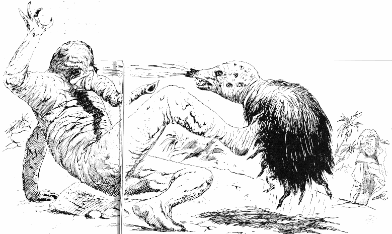 Kurz nach seiner Ankunft landen die drei unithischen Ausgestoßenen Golath, Liszog und Zerft mit ihrem schrottreifen Raumschiff KASZILL auf Crests Planet. Die Unither sind menschengroße, plump gebaute Wesen mit einer glatten und zähen Haut von hellbrauner Farbe. Ihr halbkugeliger, kaum beweglicher Kopf weist zwei große Augen auf. Neben ihren beiden Armen verfügen die Unither über einen armlangen Rüssel, der als Werkzeug und zur Nahrungsaufnahme dient. Als sie den Arkoniden entdecken, sehen Golath, Liszog und Zerft die Chance für eine Heldentat, die ihnen die Heimkehr nach Unith erlauben könnte. Ein Kampf auf Leben und Tod beginnt, weil die Unither zum einen Crests Space-Jet erobern wollen und zum anderen in dem Arkoniden den Vertreter jener Kolonialmacht sehen, die Unith unterworfen und ausgebeutet hat.