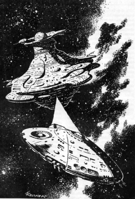 Es ist ein Gebilde mit unendlichen, sich nicht kreuzenden Flächen. Die Außenabmessungen betragen für die „Hutkrempe“ oder den „Äquatorring“ 7000m, für die Höhe von oberer zu unterer Basis ebenfalls 7000m, für die Basis oben und unten jeweils 2500m. Das ganze Gebilde wirkt noch verwirrender und unwirklicher, weil das Auge von zahllosen farbigen Linien in die Irre geführt wird. Es ist eine Art vierdimensionales Labyrinth mit unzähligen Schlauchöffnungen. Innerhalb des sinnverwirrenden Gigantenkomplexes gibt es verschlungene Irrgartenpfade wie in einer modernen Compu-ter-3-D-Graphik.