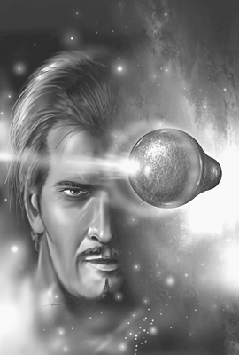 Dirk Schulz, der mit dem Cover von PR 2200 das Bild von Kantiran geschaffen hat, wählte als Vorlage dieses Foto des Schauspielers Nicholas Rogers. (Perry Rhodan-Illustrator Johnny Bruck, S. 152)