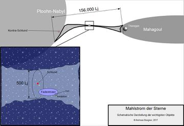 Der Mahlstrom der Sterne ist eine 156.000 Lichtjahre lange Materiebrücke zwischen den beiden Galaxien Ploohn-Nabyl und Mahagoul, die vor etwa zwei Milliarden Jahren kollidierten.