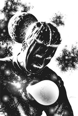 Alaska bekam bei dieser Reise Kontakt mit einem Cappin-Fragment, das sich als schillernde, farbige Masse in seinem Gesicht manifestierte.