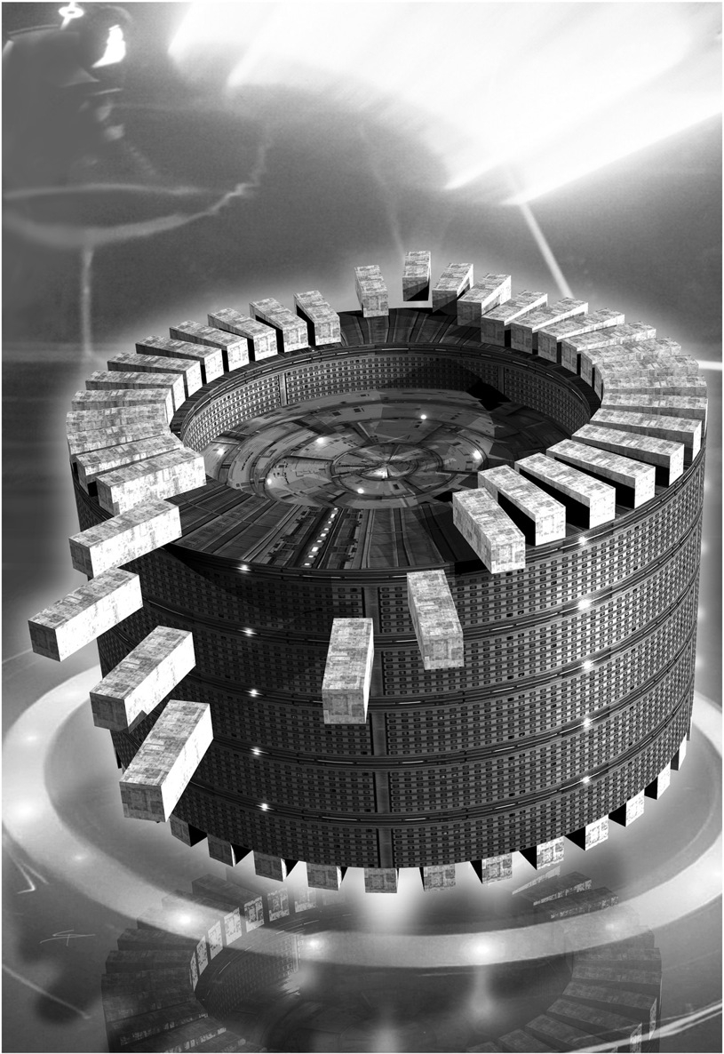 Die scheibenförmige Kerneinheit ist von Peripherie-Einheiten umgeben. So können vier Waffendrohnen an der Ober- und Unterseite der Scheibe angedockt werden. Hierfür werden modifizierte und unbemannte CYGNUS-Kampfgleiter oder Raumjäger der HALLEY-Klasse verwendet. (PR 2766, Kommentar)
