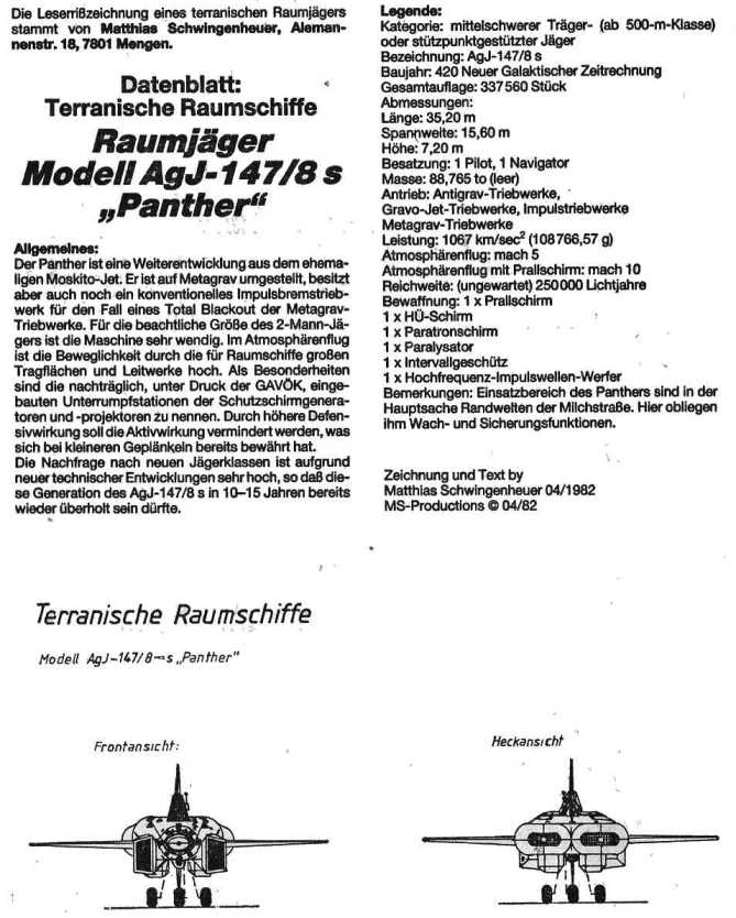 Raumjäger Modell AgJ-147/8s "Panther" Terranische Raumschiffe (Beiboote) |