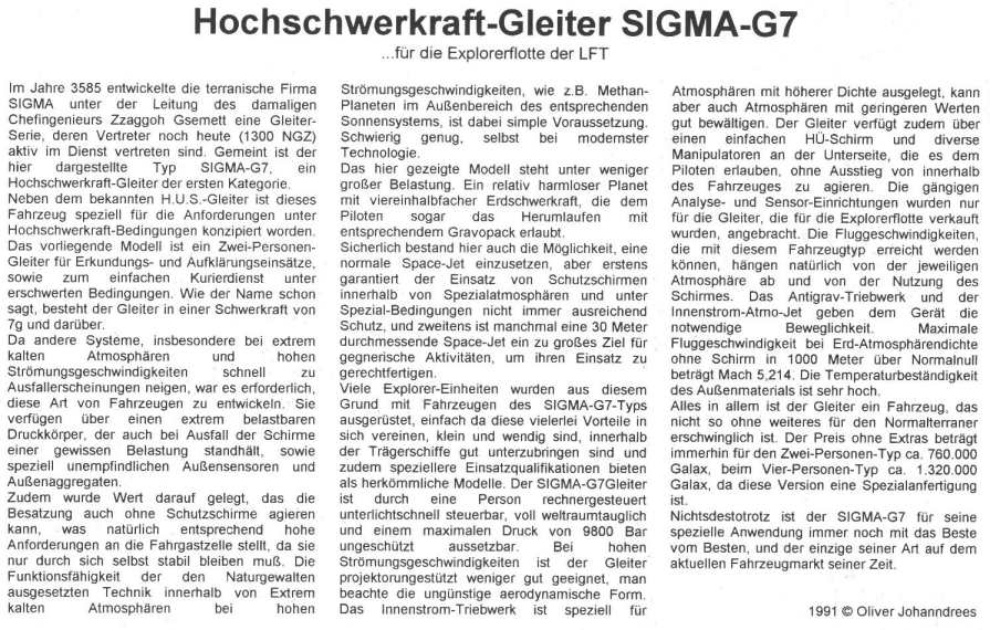 Hochschwerkraft-Gleiter SIGMA-G7 Terranische Beiboote (Explorerflotte) |