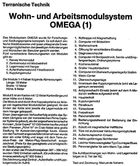 Wohn- und Arbeitsmodulsystem OMEGA (1) Terranische Technik (Bauwerke) |