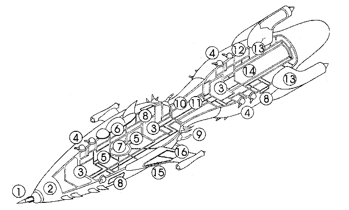 Beiboote: 16 Rettungskapseln, 6 Raumfähren, 4 Gleiter