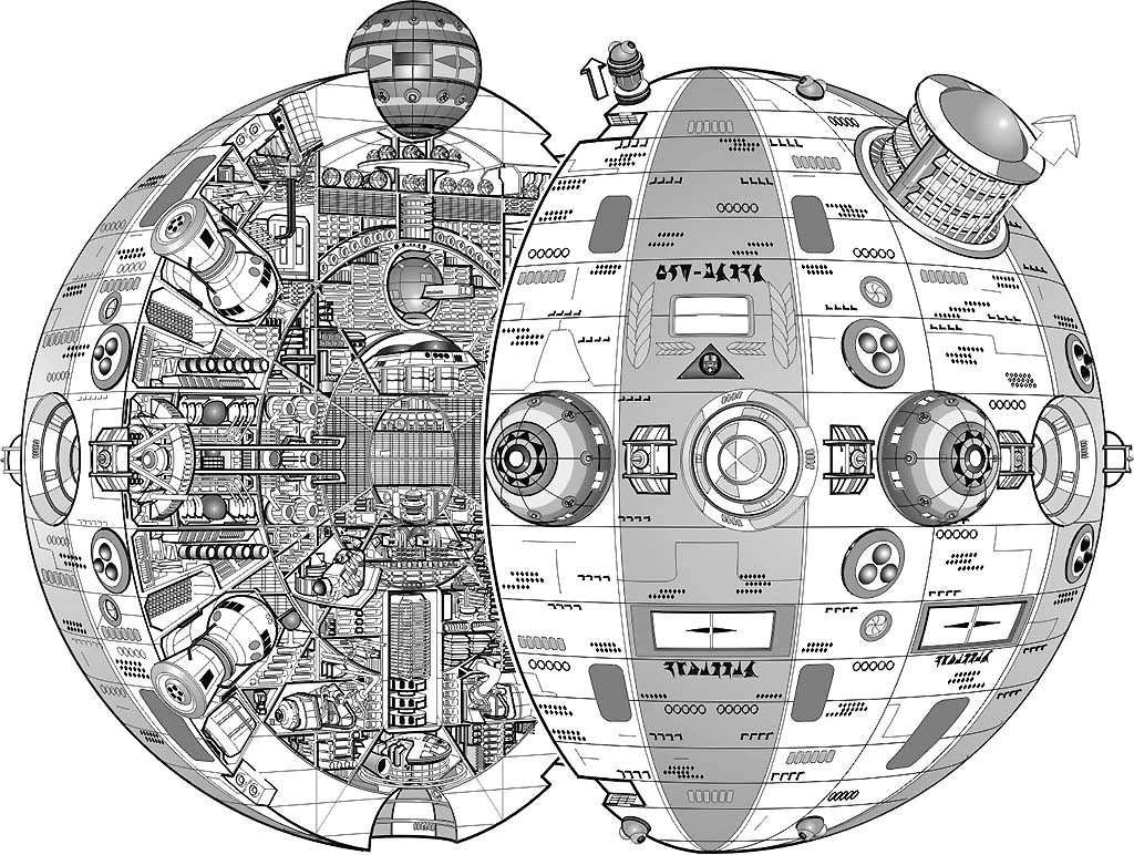 Polkreuzer 2. Modulbucht für technische Ergänzungen 3. Einer von vier Hypertrops zur Energieversorgung 4. Transform Dreifachgeschütz (3x4000 Gigatonnen) 5. Metagravtriebwerksanlagen 6. Untere Gravitrafspeicher 7. Shift Hangar 8. Antigrav- und Bordschwerkrafterzeuger 9. Hauptsyntronkomplex 10. Paratron Schirmgeneratoren (6x) 11. Paratronkonverter (3x) 12. Lebenserhaltungssysteme 13. Haupt-Unterkunftssektion 14. Leitzentrale |