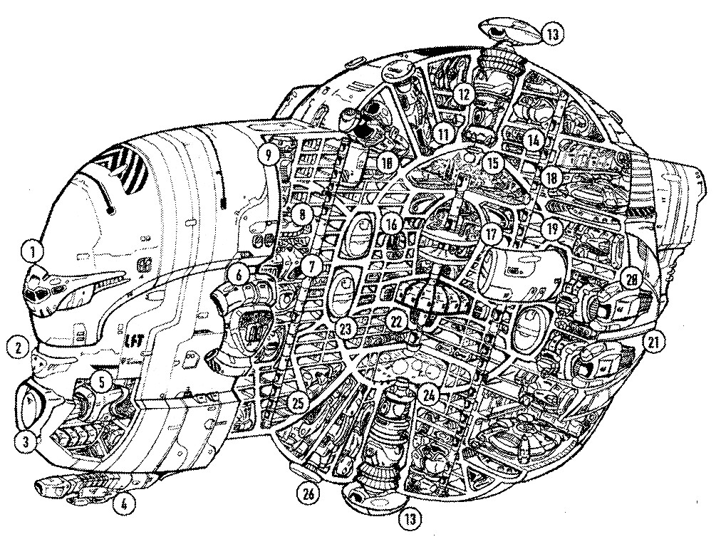 13. Abstrahlpol einer 4000 Gigatonnen Transformkanone14. Paratronkonverter und Schirmfeldprojektoren