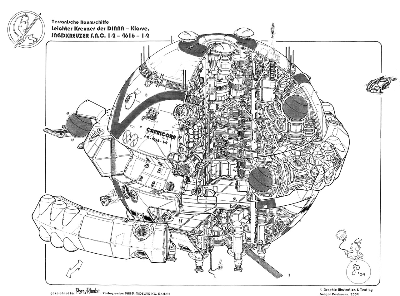 Jagdkreuzer S.N.O. 1-2 - 4616 - 1-2 - Leichter Kreuzer der DIANA-Klasse Terranische Raumschiffe - Text im pdf.Format (Acrobat-Reader erforderlich) |